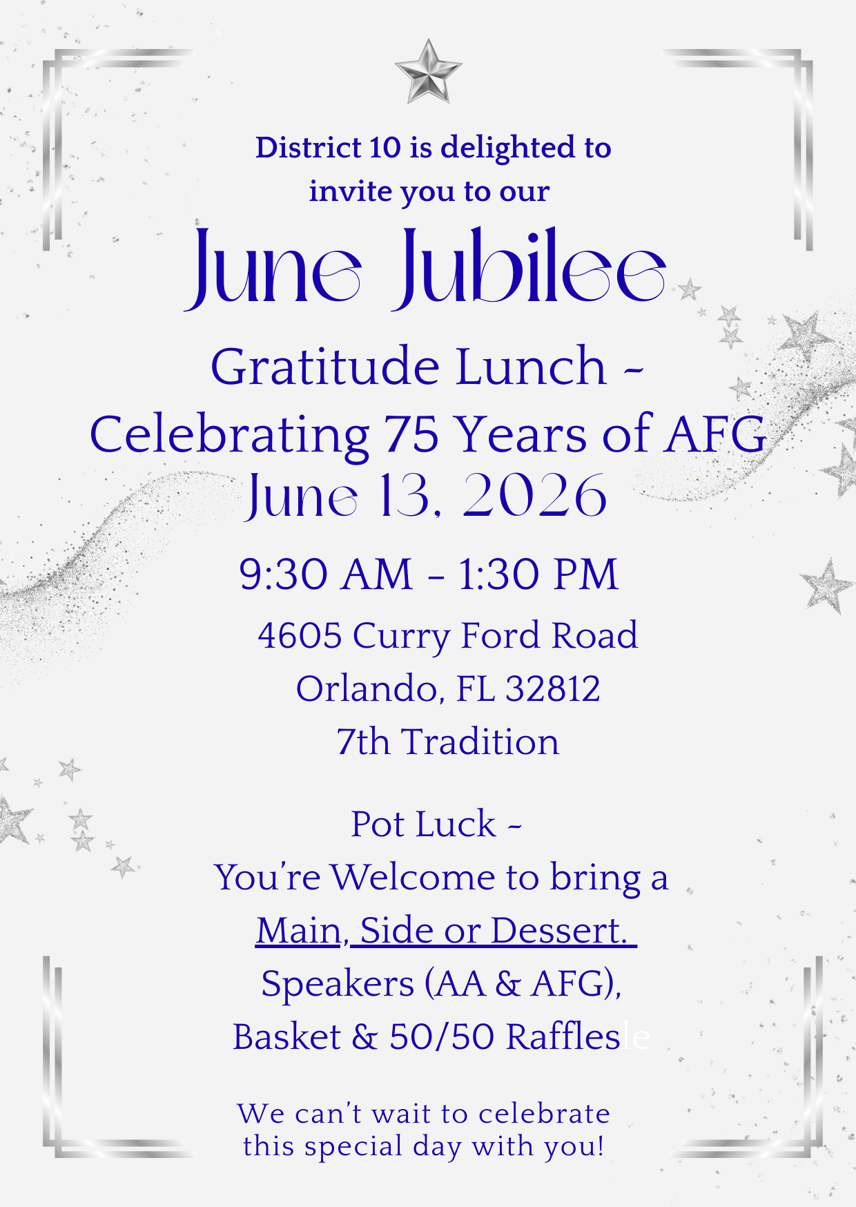 If you have Al-Anon Family Group AFG news you would like to share with the rest of District 10 – please submit those announcements, articles, or events to: [email protected]